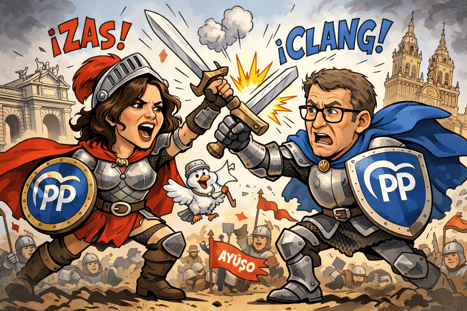 Allí conviven —es un decir— Alberto Núñez Feijóo, registrador de la propiedad con alma de presidente autonómico eterno, y Isabel Díaz Ayuso, presidenta de Madrid, influencer accidental, azote del sanchismo y estrella invitada permanente de sí misma.